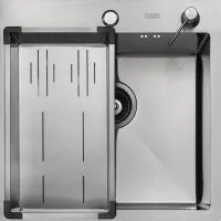 Установка: над столешницей; Материал: нержавеющая сталь; Число основных чаш: 1; Форма: прямоугольная; Цвет: сатин; Поверхность: матовая; Перелив: в основной чаше; Расположение основной чаши: по центру; Коландер